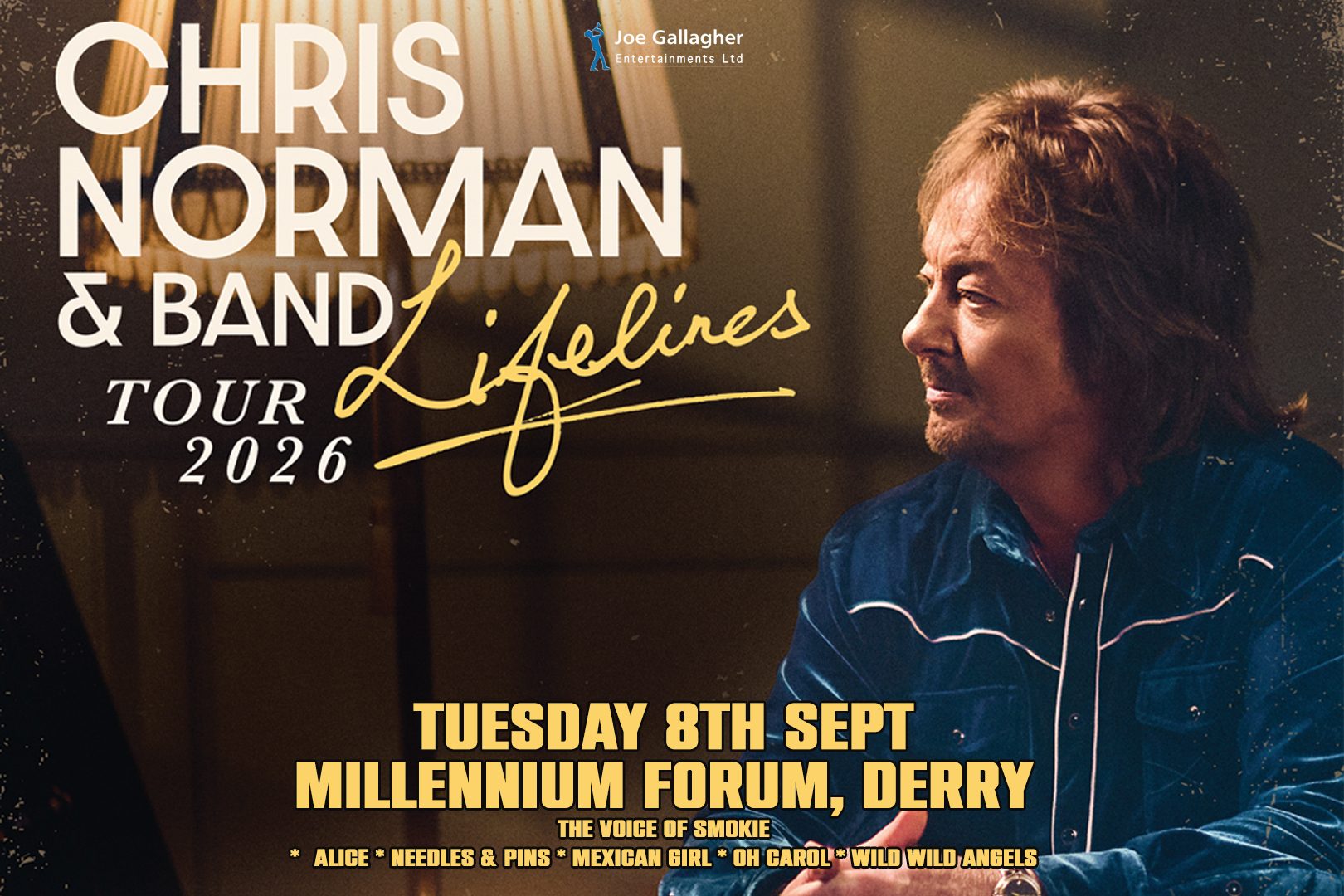 Chris Norman will relive 50 years rocking' nostalgia as he brings his band to Derry’s Millennium Forum for a second time after a sell out show last year. This concert will celebrate 50 incredible years of Smokie, one of the most iconic and influential bands of the 70s.