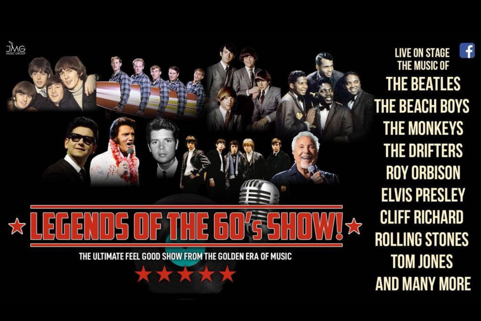 Performing high quality tributes to icons like Elvis, The Beatles, The Monkeys, The Rolling Stones, Roy Orbison, Tom Jones, Cliff Richard, The Beach Boys and the Drifters to name but a small few, all in one night, let us deliver to you an entertaining musical live experience featuring over 40 iconic hit songs never to be forgotten!