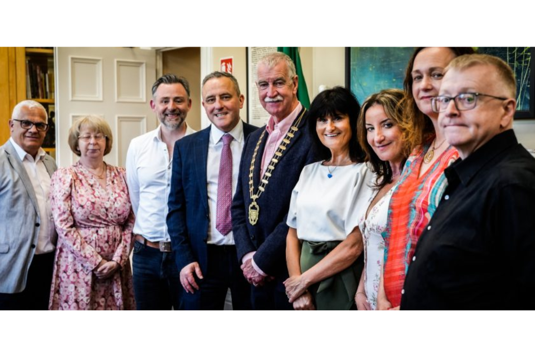 From L to R: Tim Atwood, HUME Foundation, Cllr. Anne Higgins, Kieran Griffiths, Director Hawk’s Well Theatre, Martin Lydon CEO Sligo County Council, Declan Bree, Cathaoirleach of Sligo County Council Councillor, Cllr. Edel McSharry, Cara McCartney, Development and Creative Engagement Manager Millennium Forum, Maeve McGowan, Programming Manager Hawk’s Well Theatre, David McLaughlin, CEO Millennium Forum.